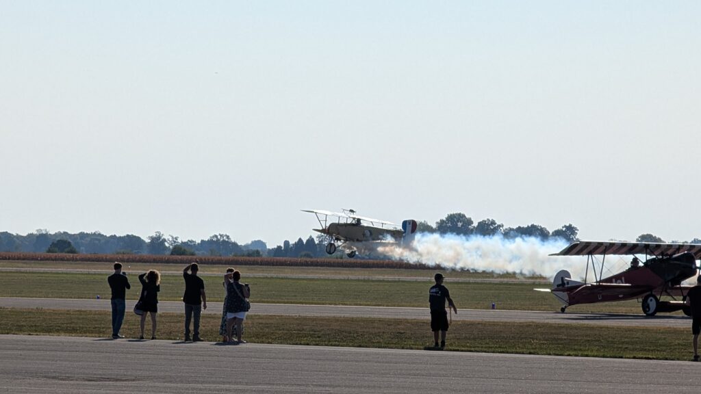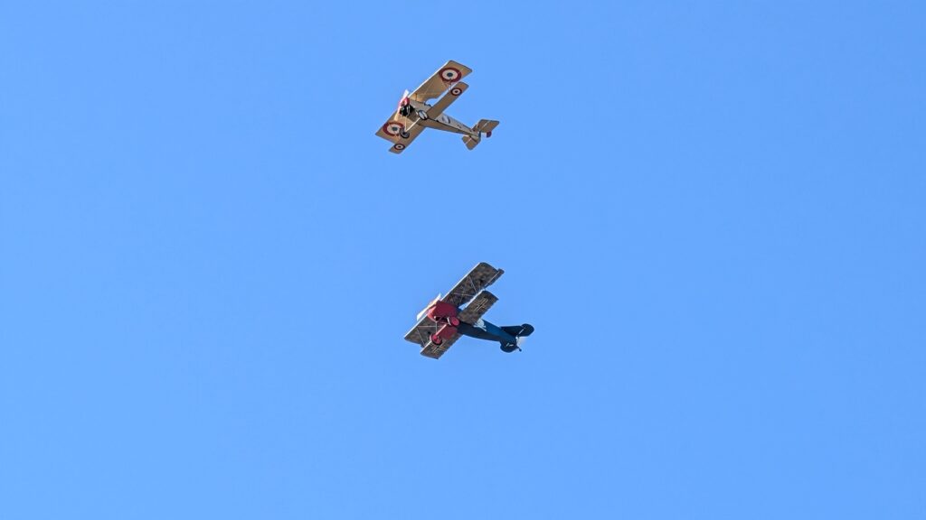 Nieuport 11 and a Fokker D VII flying over the airport – Photo by Chris Kiefer